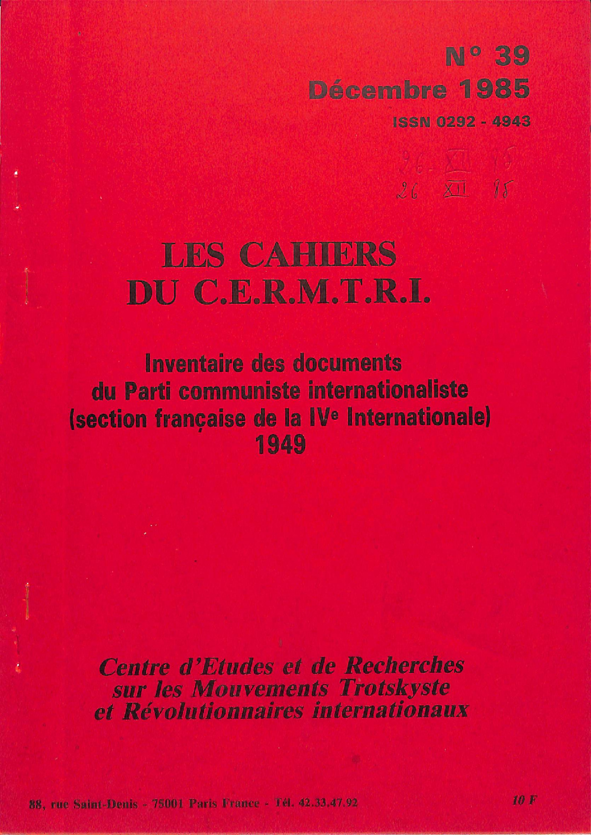 Les Cahiers du Cermtri année 1985 n° 39