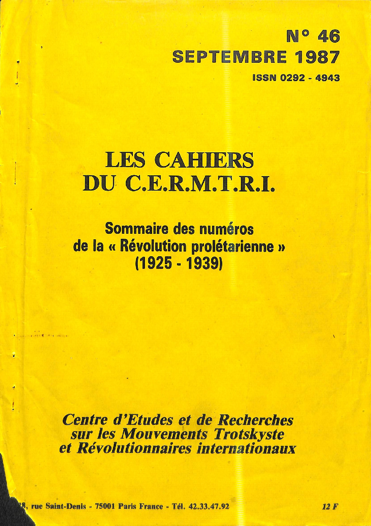 Sommaire des numéros de la Révolution prolétarienne (1925-1939) Les Cahiers du Cermtri année 1987 n° 46 N° 46 – septembre 1987 Sommaire des numéros de la Révolution prolétarienne (1925-1939) Rubrique Les cahiers du Cermtri Étiquettes Inventaires/Catalogues