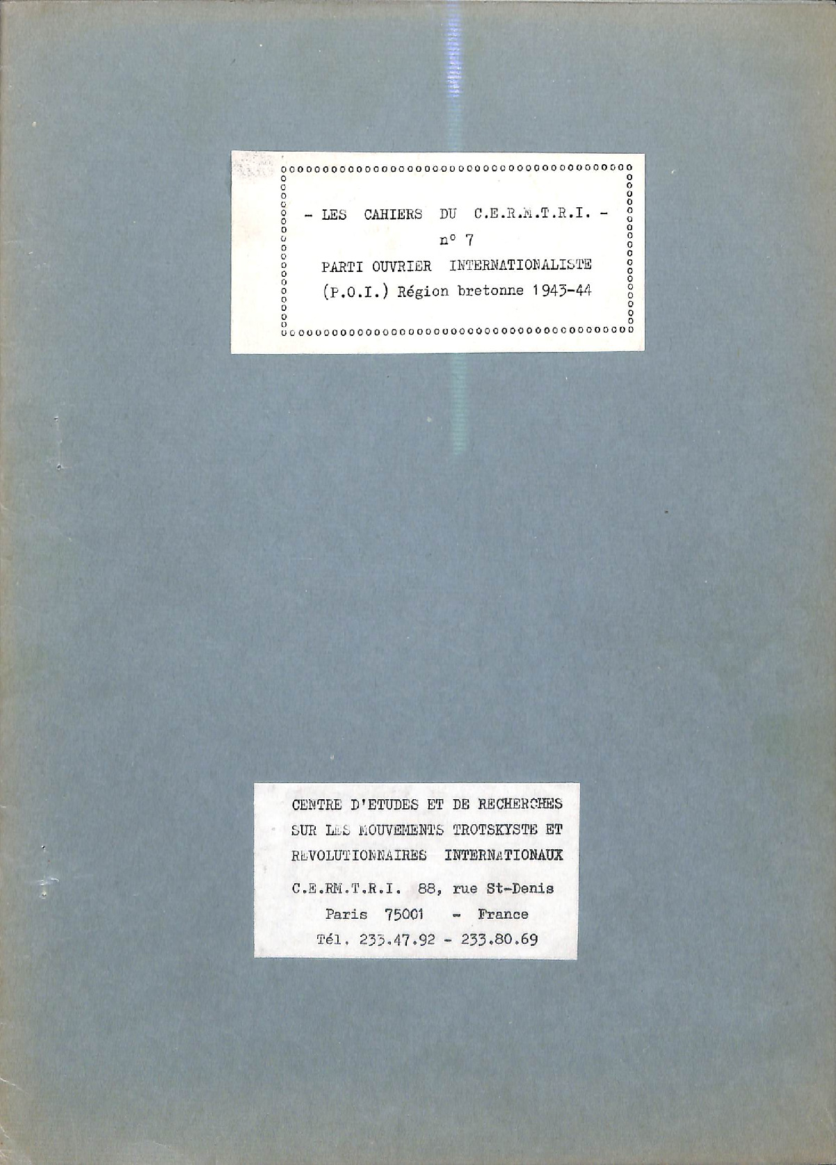 Parti Ouvrier Internationaliste (POI) - Région bretonne, 1943-1944 Les Cahiers du Cermtri année 1977 n° 7 N° 7 - 1977 Parti Ouvrier Internationaliste (POI) - Région bretonne, 1943-1944 Rubrique Les cahiers du Cermtri Étiquettes Inventaires/Catalogues