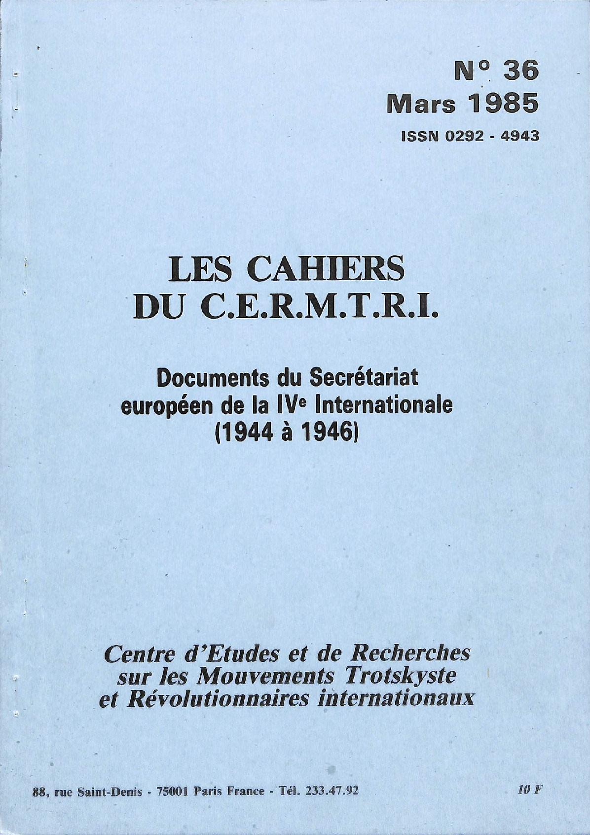 Documents du Secrétariat européen de la IVe Internationale (1944 à 1946) Les Cahiers du Cermtri année 1985 n° 36 N° 36 – mars 1985 Documents du Secrétariat européen de la IVe Internationale (1944 à 1946) Rubrique Les cahiers du Cermtri Étiquettes Inventaires/Catalogues